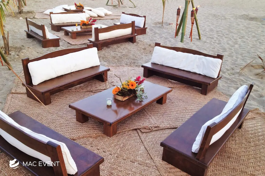The petate mat adds a touch of authentic Mexican tradition to weddings, beach parties, and corporate events in Lo de Marcos. Woven from natural palm fibers, this event décor rental brings texture, warmth, and cultural charm to your setup. Perfect for picnic lounges, rustic themes, or boho-inspired spaces, the petate mat serves as a stylish base for floor seating, decorative accents, or display areas. Renting petate mats in Lo de Marcos allows you to create organic and inviting environments that reflect local craftsmanship. For a natural and culturally rich detail, the petate mat is a beautiful addition to any event.