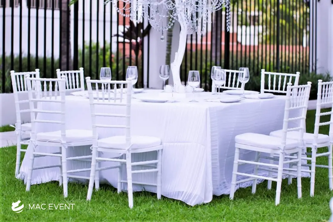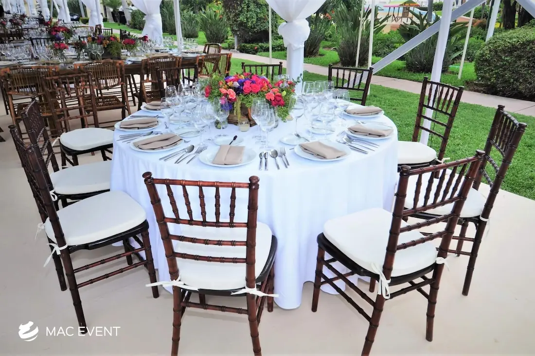 The wood chiavari chair, also known as a tiffany chair, brings warmth and elegance to weddings, parties, and corporate events in Lo de Marcos. Its natural wood finish and classic design make it a favorite for both indoor and outdoor settings. This chiavari chair rental offers a perfect balance of beauty and durability, providing sturdy and comfortable seating for guests. Renting wood tiffany chairs allows you to create a cohesive and refined atmosphere that complements any event style or décor. For those who value sophistication and timeless appeal, wood chiavari chairs are the ideal choice for creating a memorable event in Lo de Marcos.
